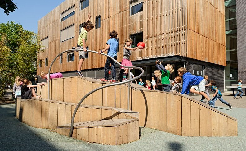 De Nicolaas Maesschool ligt in het bruisende hart van Amsterdam, veilig verscholen tussen twee gebouwen en bereikbaar via een tunnel die letterlijk de deuren opent naar een wereld vol kansen. Op ons vernieuwde schoolplein leren en spelen leerlingen in een levendige, inspirerende omgeving.